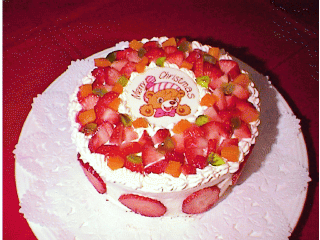 97年のクリスマスに作った、いちごと、黄桃のケーキです。