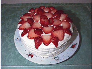スポンジケーキに、生クリームたっぷり。いちごをたくさんのせました