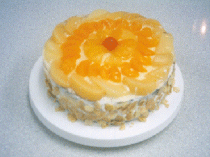 スポンジケーキに、フルーツをのせ、ゼリーでかためてあります。