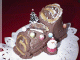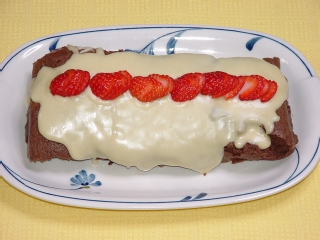 00年のバレンタイン ホワイトチョコケーキです。 甘さをおさえたココア味の スポンジに、ホワイトチョコを たっぷりかけて、いちごを トッピングしました。中には、 チョコバナナクリームが たっぷり入っています。 |