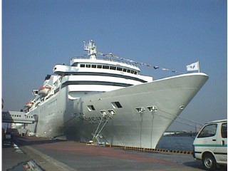 ぷりんちゃんは、 これから、この、 大きな船に乗って、 お出かけです。 |