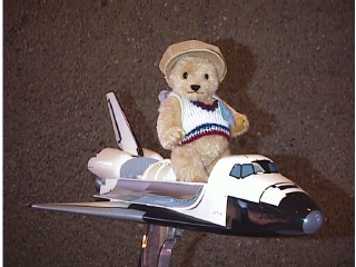 スペースシャトルに乗って。 「これから、うちゅうに ゆくんだよ。」 |