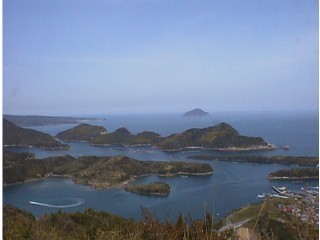山の上からの景色です。 小さな島がたくさんで、 とてもきれいです。 |