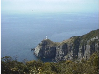 大瀬崎灯台。 断崖の上に、ぽつんと 立っています。 |