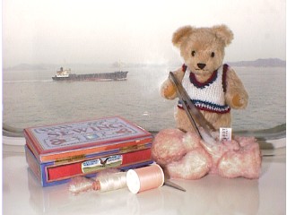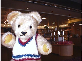 船の中のお店やさん。 船オリジナルのグッズが たくさんあります。 「くまも、いるよ。」 |