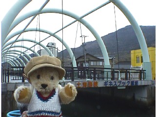 小豆島に着きました。 ここは世界一狭い 土渕海峡です。 「ぷりんちゃんも、 わたったよ。」 |