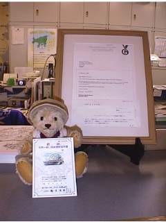役場で海峡を渡った 証明書をもらいました。 後ろの額は、ギネスの 認定書です。 |