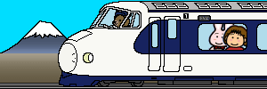 新幹線に乗るBOTさん。お隣には、「BOTうさぎ」もいます。