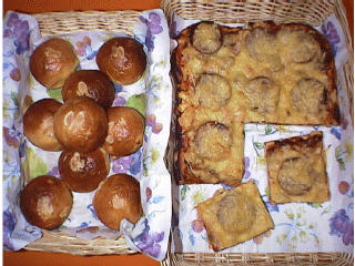 左:オレンジブリオッシュ オレンジピールを入れて焼きました。 オレンジ風味で、とてもおいしいです。 卵、バターをたくさん使ったぜいたくなパンです。 右:ピザパン バジルと、オリーブオイルの、いい香りの生地に、 チーズ、ベーコン、サラミ等を、載せて、焼きました。 簡単で、おいしく出来る、初心者向きのパンです。